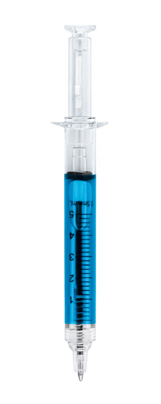 Химикалка с дизайн на спринцовка, пълнител обикновен.