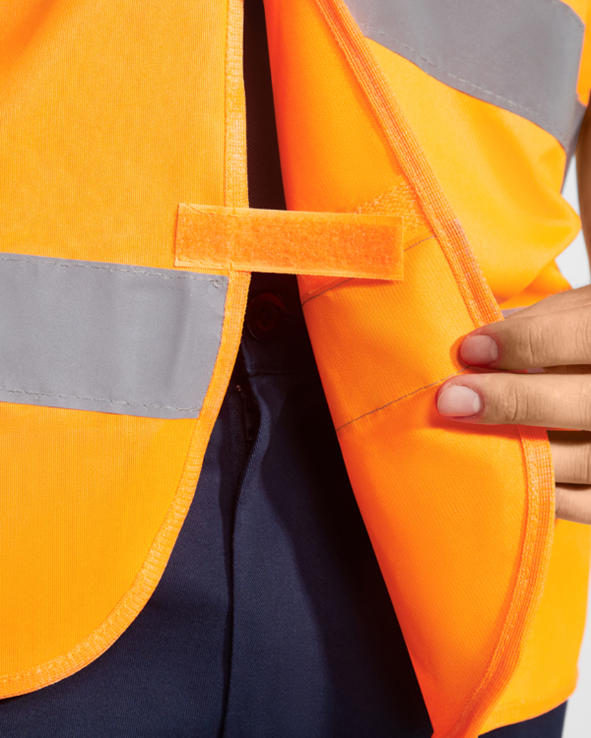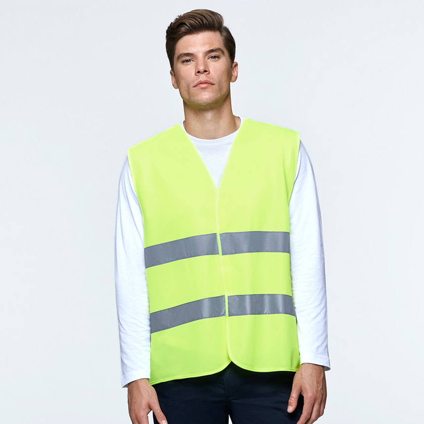 Светоотразителна жилетка с висока степен на видимост и две светоотразителни ленти. Жилетката е в индивидуална прозрачна чантичка много подходяща за авто комплект. Отпред се затваря с велкро. Идеална за сублимация. Светоотразителност: Class 2, отговаря на изискванията по EN ISO 13688:2013 y UNE-EN ISO 20471:2013