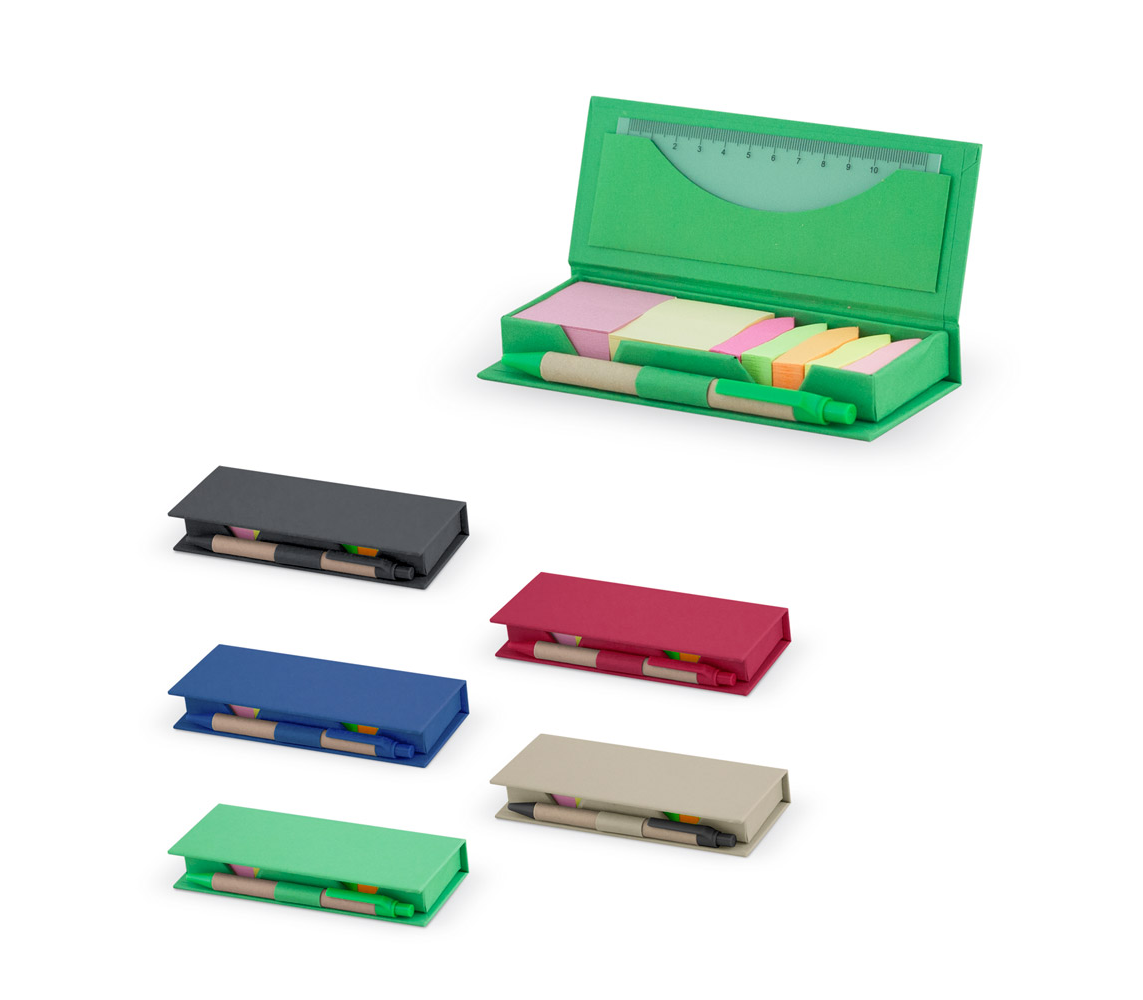 Еко кубче с еко химикалка, линия и самозалепващи листчета 7 цвята.