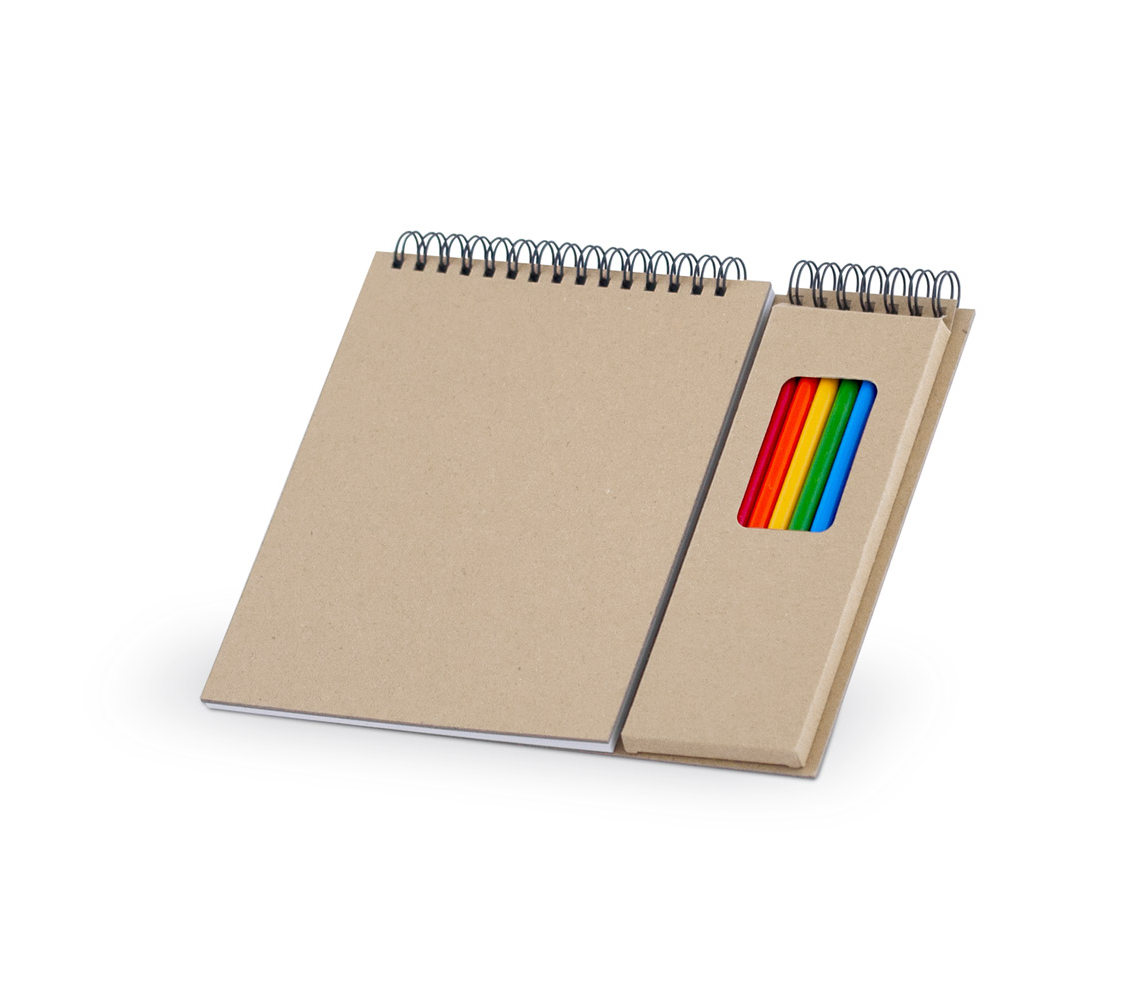 Еко тефтер с 8 цветни моливи, 50 листа без редове, цвят на хартията бял.