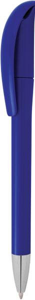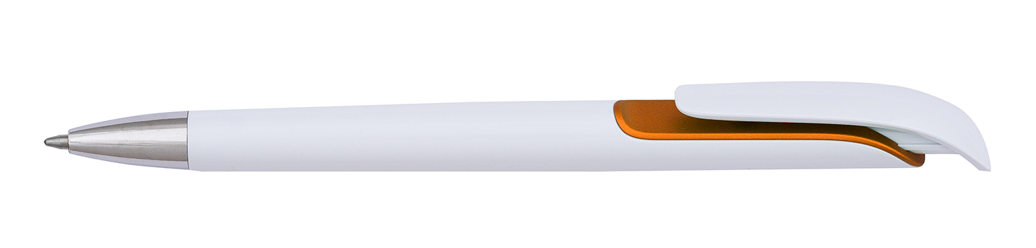 Пластмасова химикалка с цветен елемент под клипса и щракащ механизъм. Подходяща за надписване и персонализация чрез тампонен печат и UV пълноцветен печат.