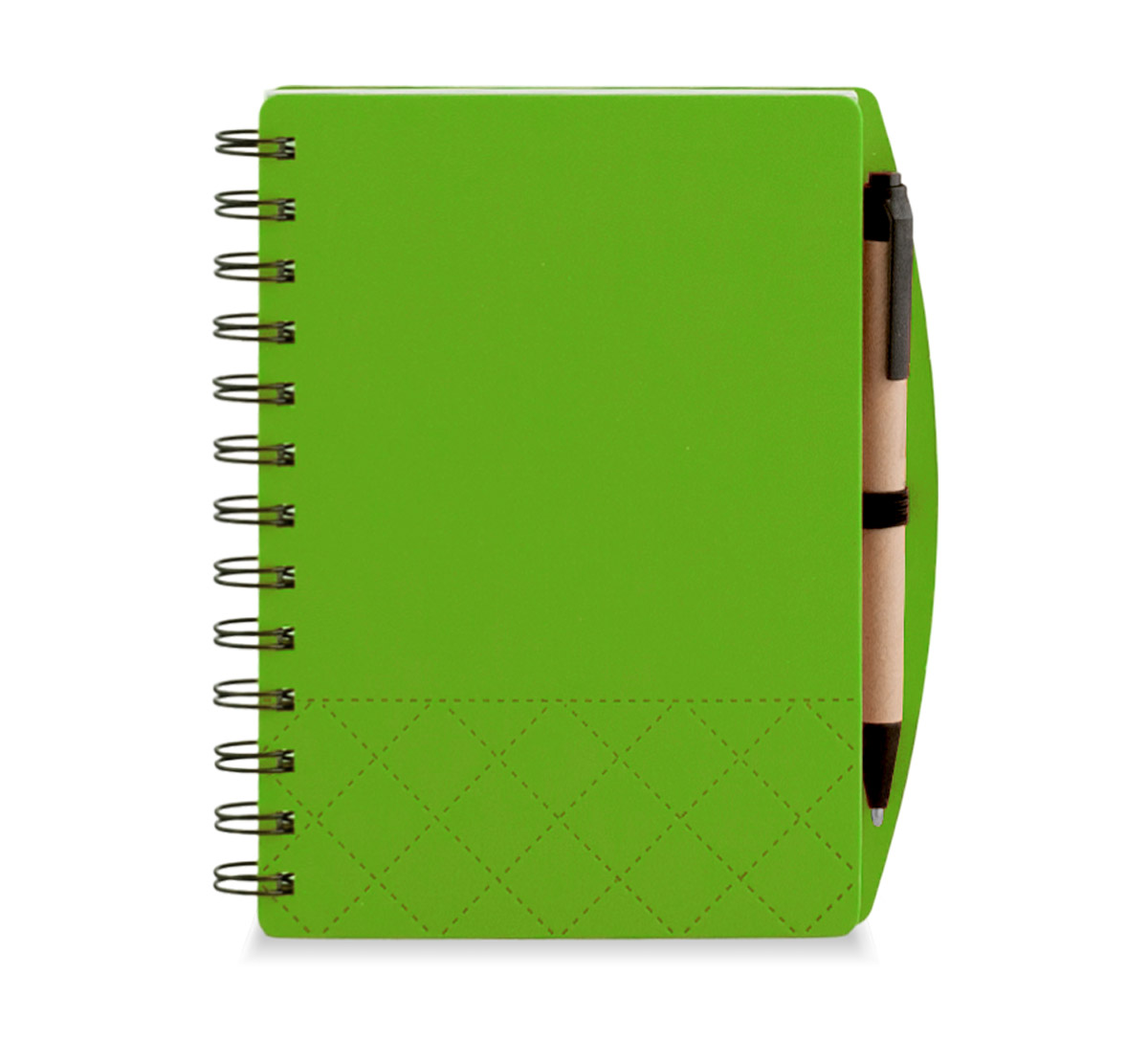 Бележник, изработен от RPET филц и 160 страници на редове от рециклирана хартия със спираловидна подвързия и ластик за химикалка.