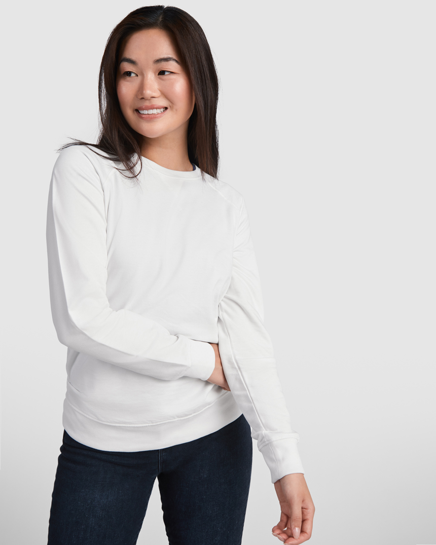Дамска ватена памучна блуза с реглан ръкав и ластик на кръста и ръкавите. Блузата е леко вталена и има декоративни стилни шевове под деколтето, което я прави много подходяща за тийнейджъри