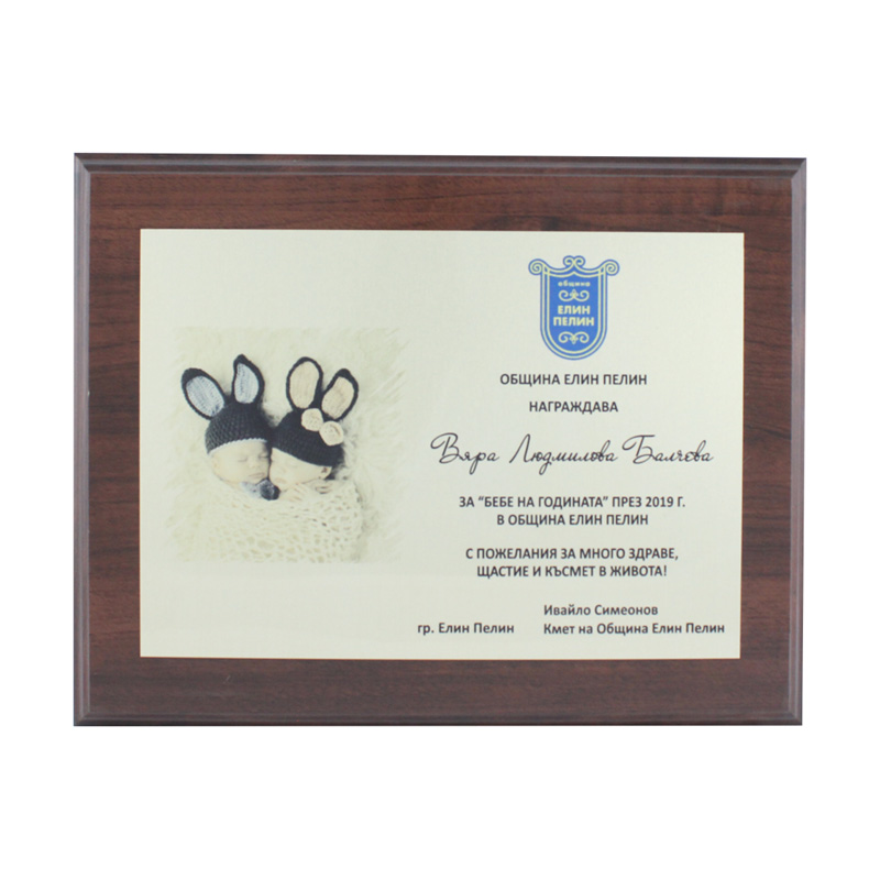 Плакетът има стойка за вертикално и хоризонтално стоене и технически отвор за закачане на стена.