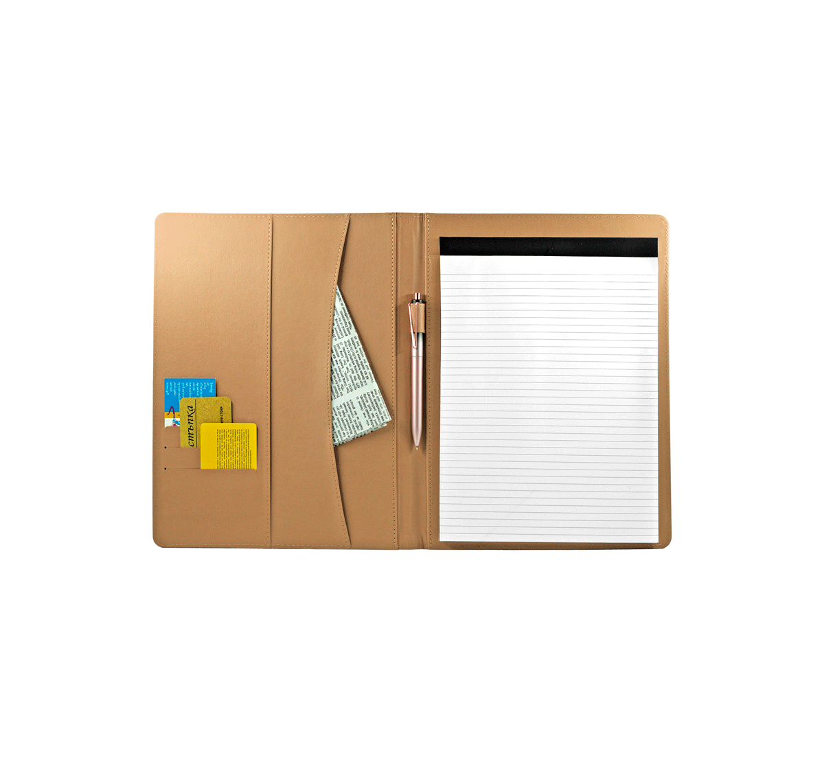 Папка с бележник А4, 30 листа с редове, цвят на хартията бял, място за химикалка, документи и визитки.