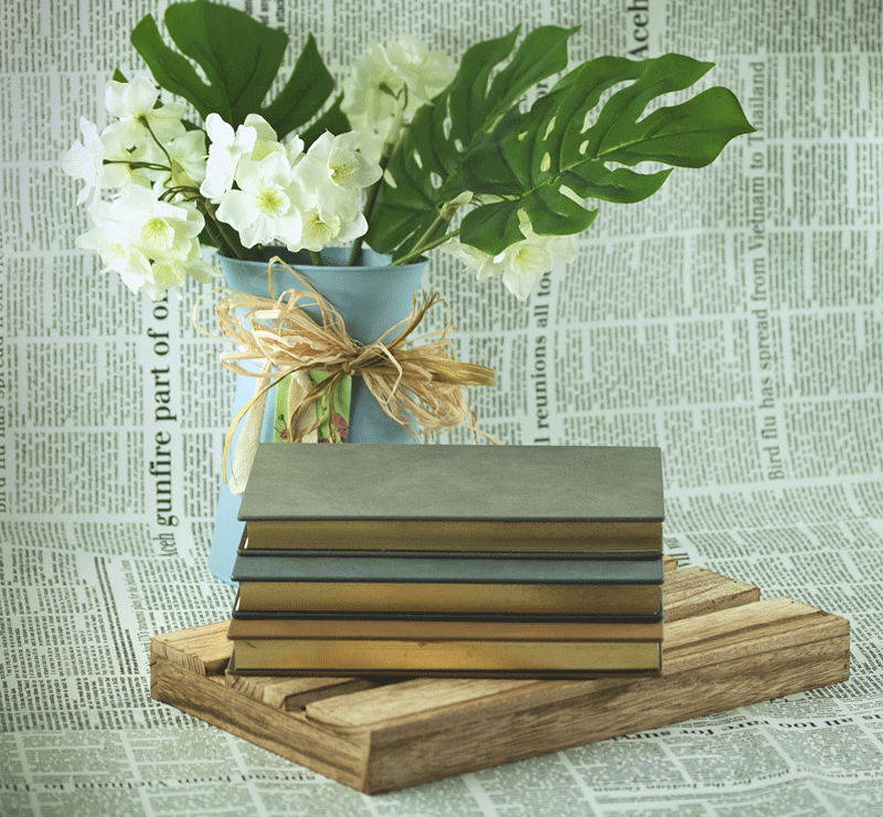 Тефтер A5 с разделител, 170 листа с редове, цвят на хартията слонова кост със златен ръб, твърда корица.