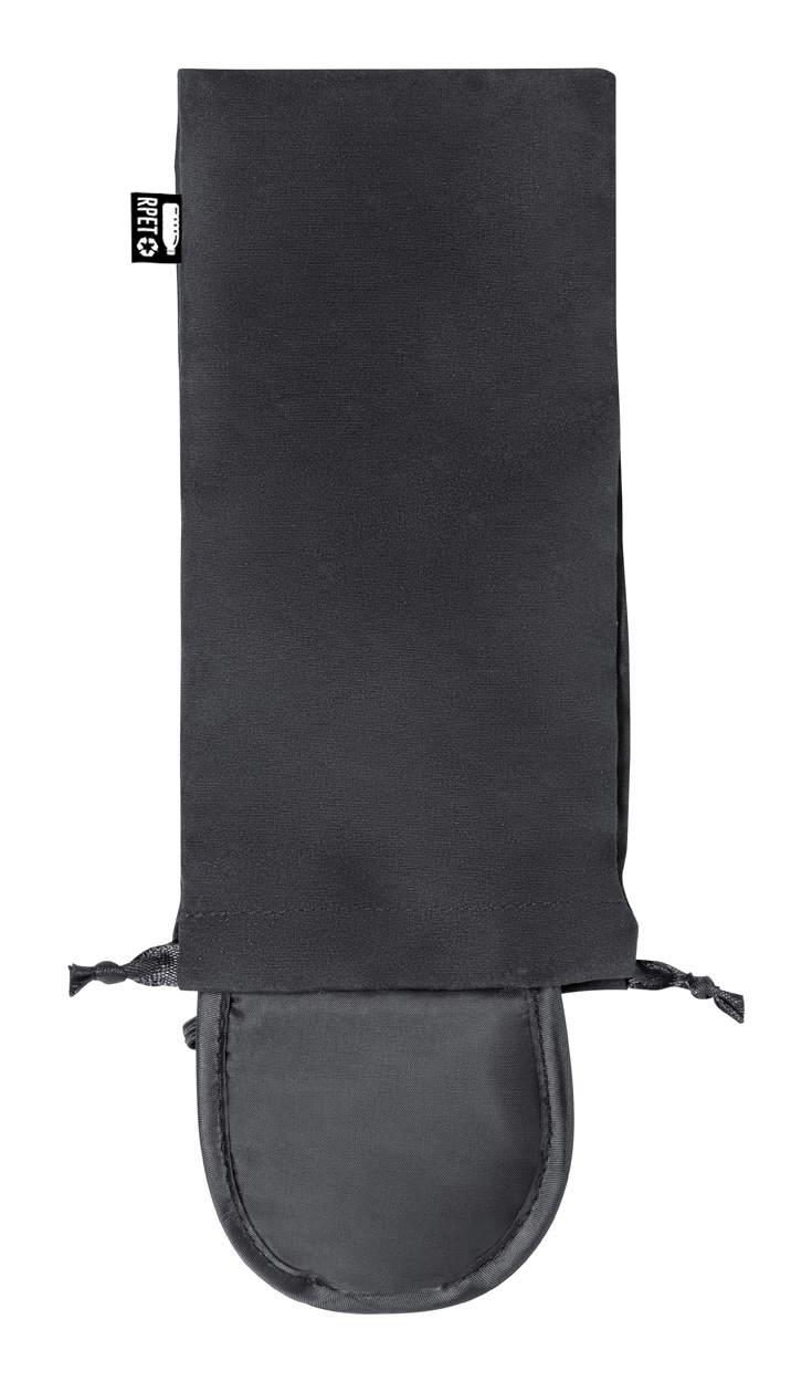 RPET полиестерна маска за очи за пътуване с гумени презрамки, в RPET калъфче. С отличителен етикет RPET.