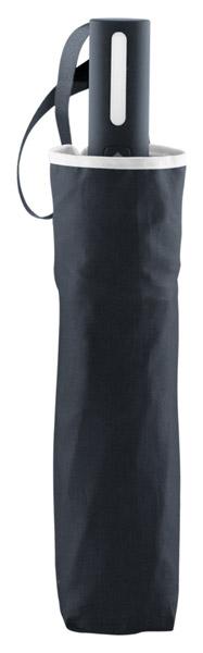 Напълно автоматичен (отваряне/затваряне), ветроустойчив сгъваем чадър RPET с 8 панела в калъфче в съвпадащ цвят. С метална рамка, ребра от фибростъкло и бамбукова дръжка