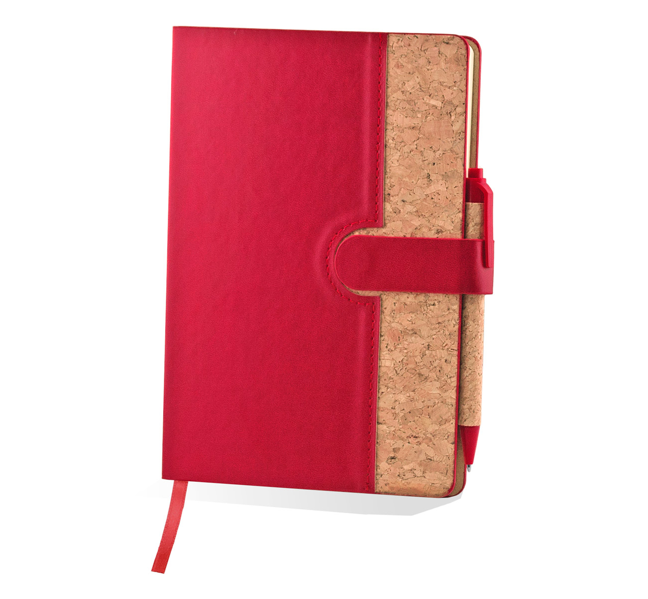 Тефтер A5 с магнитно закопчаване и разделител, еко химикалка, 96 листа с редове, цвят на хартията слонова кост с цветен ръб, твърда корица. Материал: корк, PU, хартия. Размер на артикула: 145х210x15 mm. Печатаемо поле: 80х40 mm. Печат: тампонен, ситопечат, сухо преге.