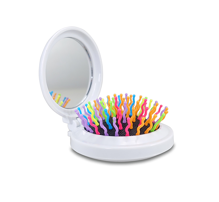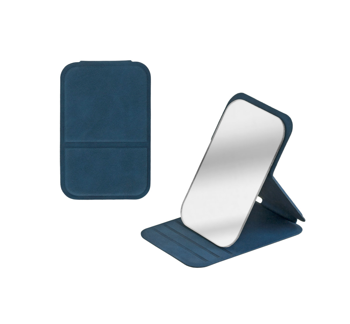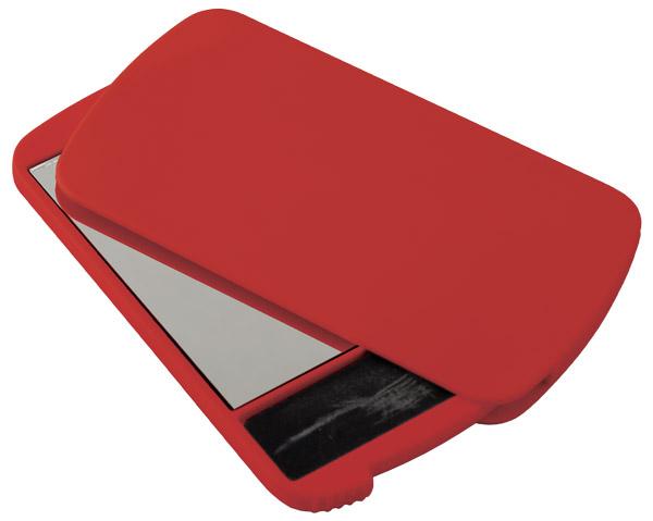 Джобно дамско огледалце от пластмаса с метално покритие. С нормални и увеличителни страни.