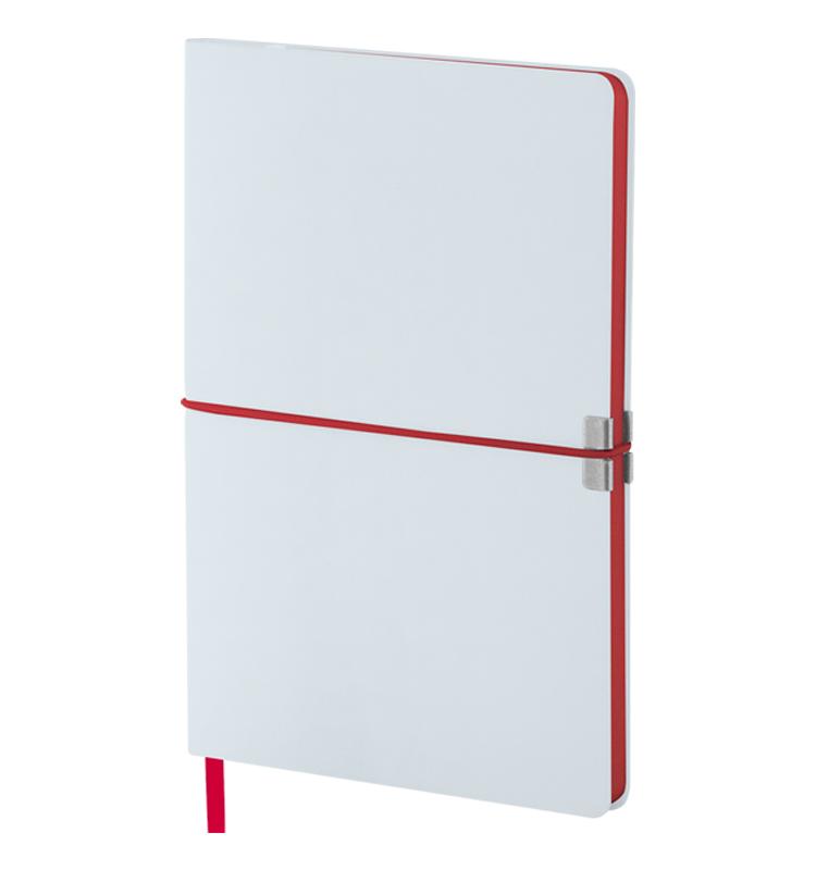 Бележник размер А5 с твърди корици от рециклирана еко кожа със 160 страници на редове от рециклирана хартия. С отметка в съответстващ цвят и ластик.