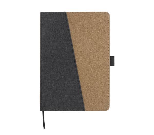 Бележник размер А5 с твърди корици от рециклирана еко кожа със 160 страници на редове от рециклирана хартия. С отметка в съответстващ цвят и ластик.