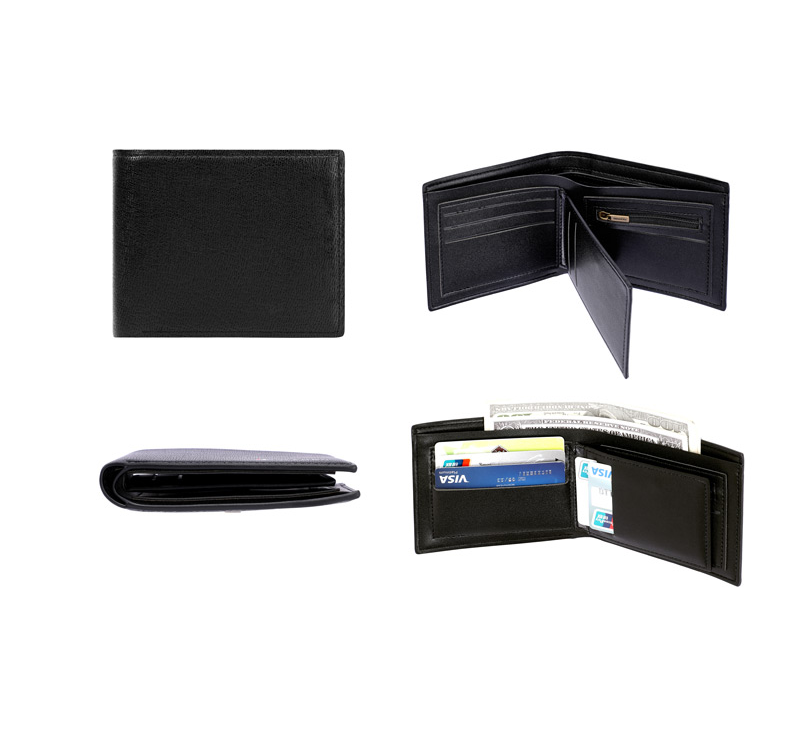 Портфейл с RFID защита, две отделения за банкноти, вътрешни джобове за карти.