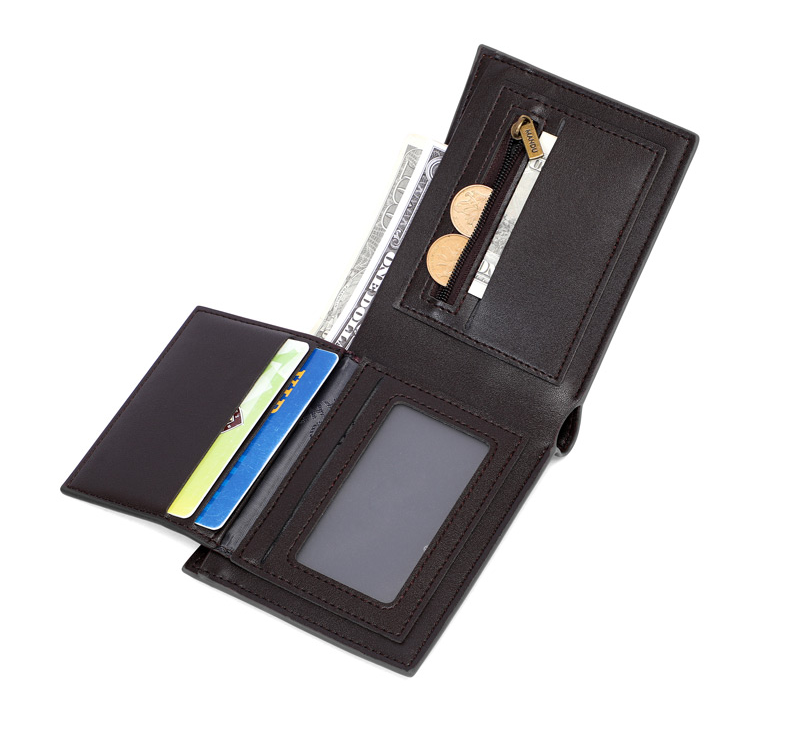 Портфейл с RFID защита, две отделения за банкноти, вътрешни джобове за карти.