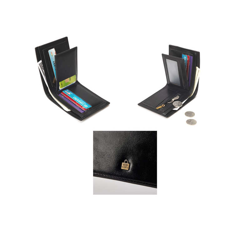 Портфейл с RFID защита, две отделения за банкноти, вътрешни джобове за карти.