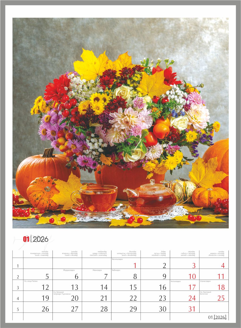 13 листов календар за 2026 година „БУКЕТИ“