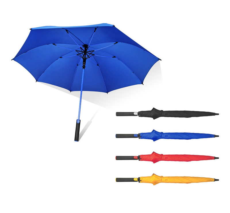 Автоматичен чадър, 8 панелен, конструкция от фибростъкло и метал, пластмасова дръжка.