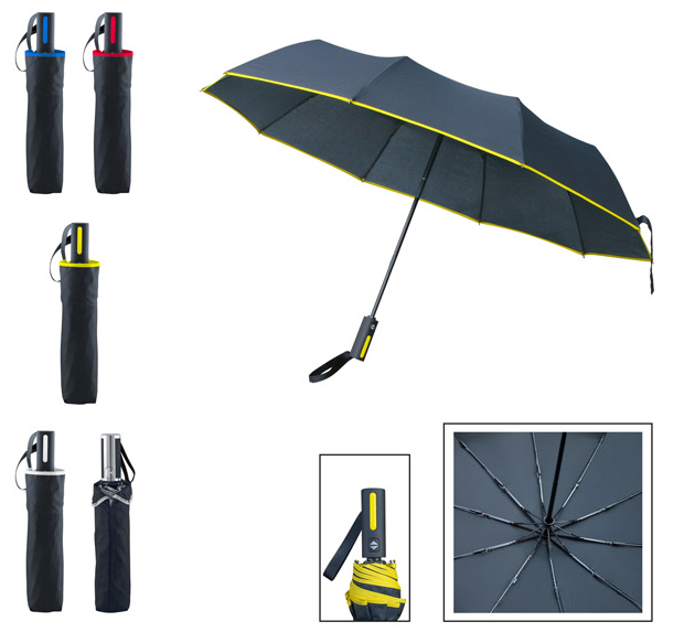 Сгъваем автоматичен чадър (отваряне/затваряне), 8 панелен, метална конструкция, гумирана дръжка.