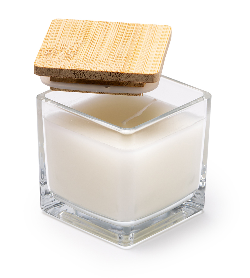 Ароматизираната свещ в стъклена купа с бамбуков капак е елегантен и екологичен вариант за създаване на топла и приветлива атмосфера във вашия дом.