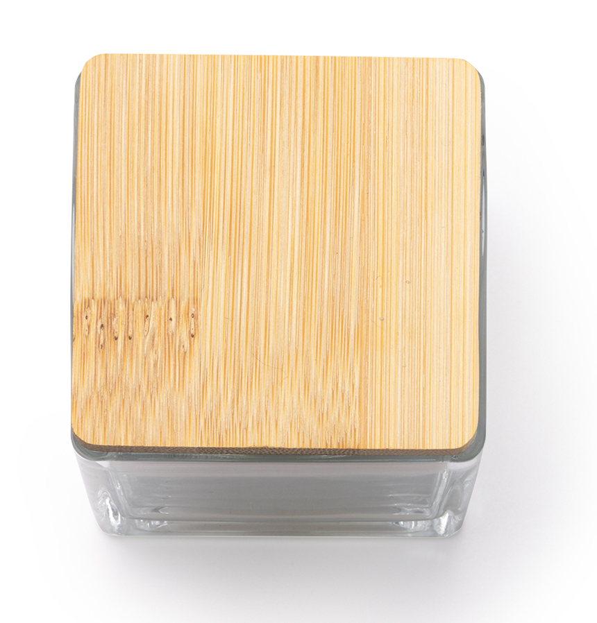 Стъклената купа придава изтънчен щрих на свещта, позволявайки светлината на пламъка да се отразява по мек и фин начин. Бамбуковият капак не само добавя естествен и декоративен елемент, но също така помага да се запази ароматът на свещта, когато не се използва.