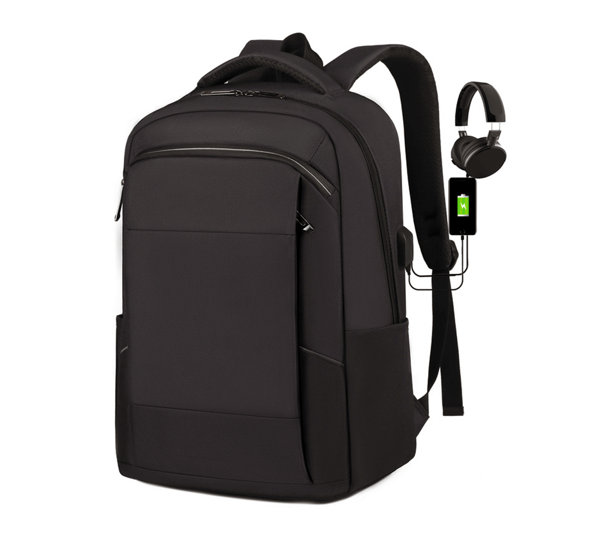 Раница с едно отделение, подсилени гръб и дръжки, вътрешни и външни джобове, технология за зареждане на вашия телефон и слушалки, отделение за лаптоп 15.6'', каишка за багаж. Материал: Oxford. Размер на артикула: 290х470х140 mm. Печатаемо поле: 100х30 mm. Печат: ситопечат, трансферен печат.