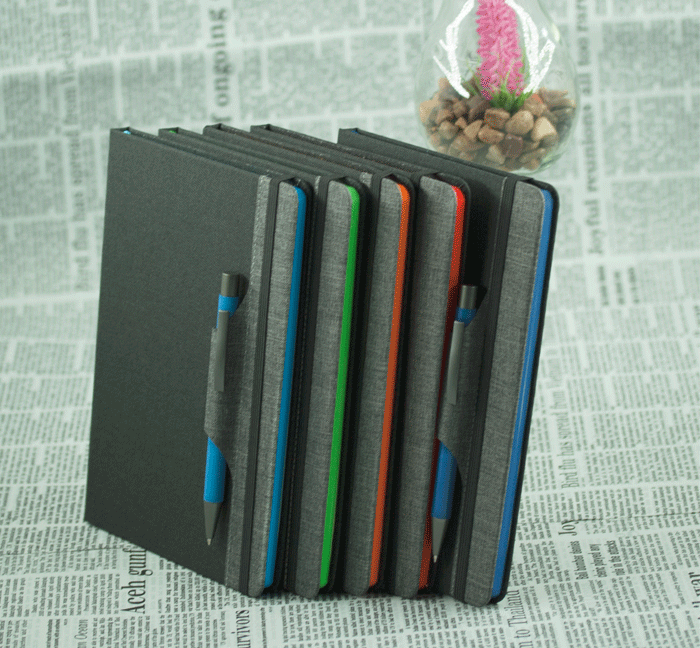 Тефтер A5 с ластик и разделител, 80 листа с редове, цвят на хартията слонова кост с цветен ръб, твърда корица. Материал: PU, хартия. Размер на артикула: 146х210х12 mm. Печатаемо поле: 70х30 mm. Печат: тампонен, ситопечат. (В цената не е включена химикалката! Артикулен номер на химикалката MP-7156)
