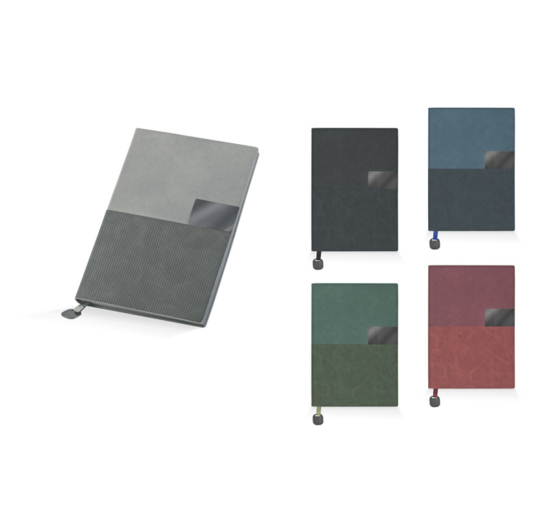 Тефтер A5 с разделител, 112 листа с редове, цвят на хартията слонова кост с цветен ръб, мека корица.