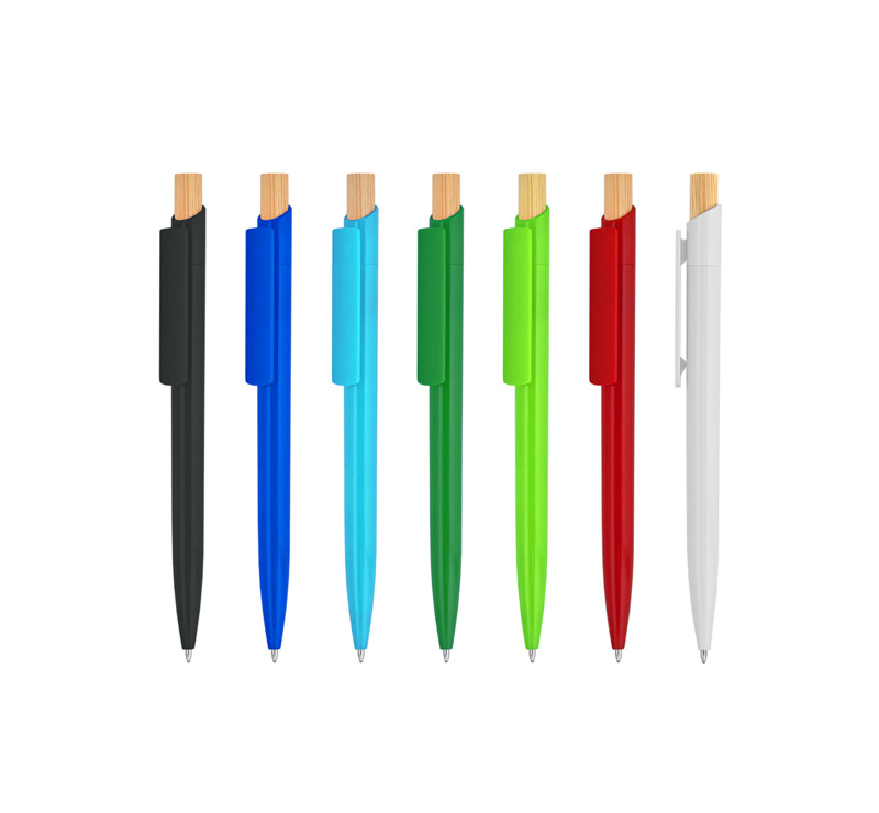 Химикалка, пълнител обикновен. Материал: пластмаса и бамбук. Размер на артикула: Ø10х146 mm. Печатаемо поле клипс: 35х5 mm. Печат: тампонен, ситопечат. Опаковка: 50 бр. в кутия/1000 бр. в кашон. При поръчка, количеството да е кратно на 50 бр.