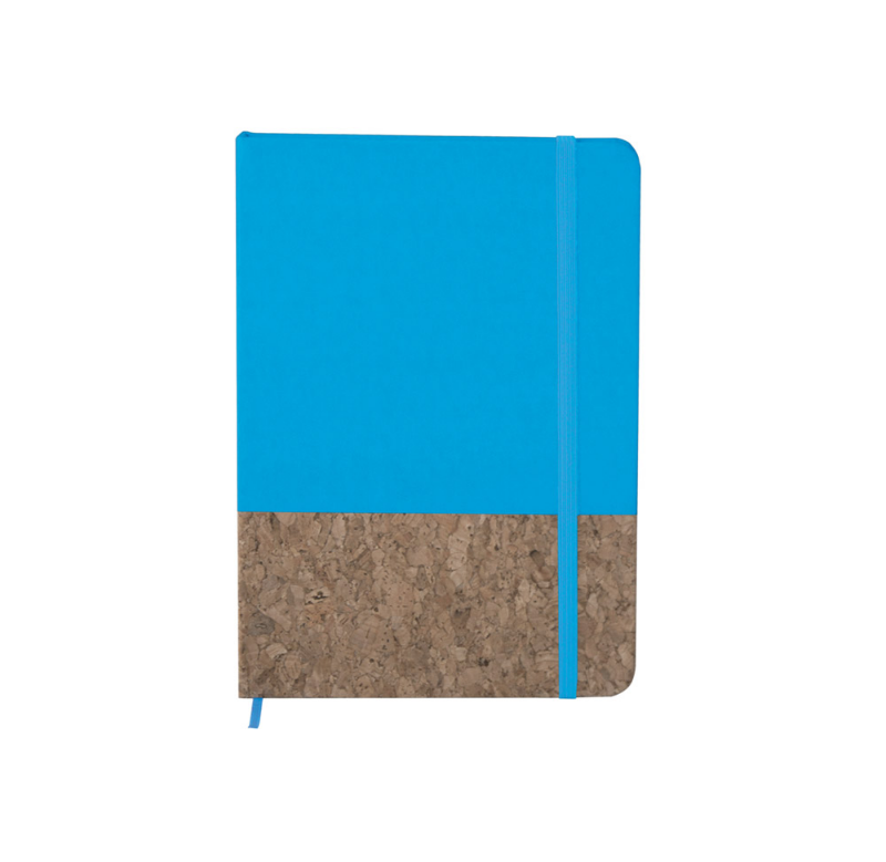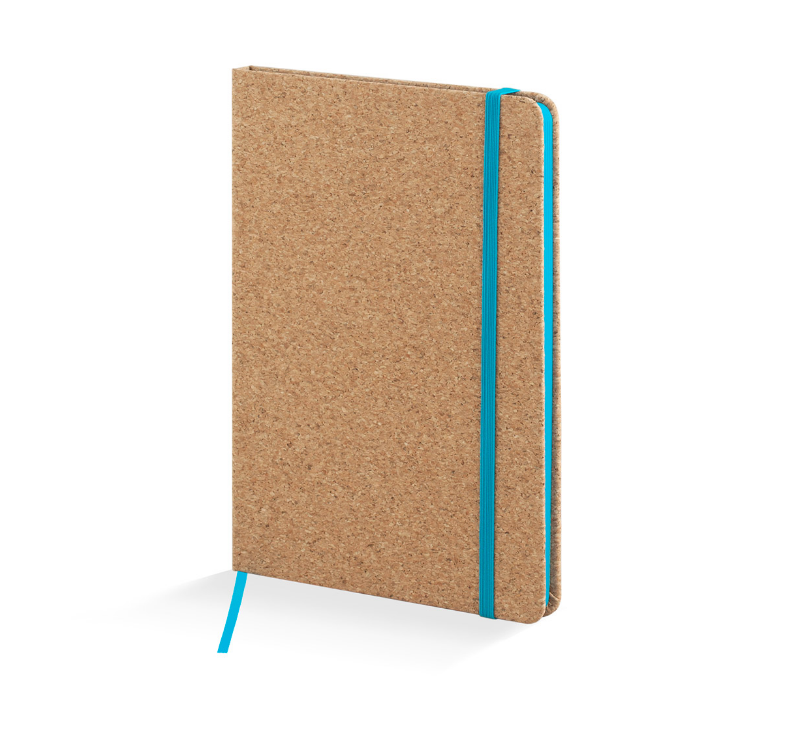 Тефтер A5 с ластик и разделител, 80 листа с редове, цвят на хартията слонова кост с цветен ръб, твърда корица.