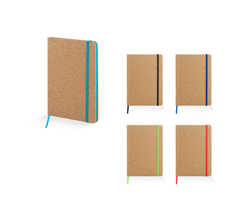 Тефтер A5 с ластик и разделител, 80 листа с редове, цвят на хартията слонова кост с цветен ръб, твърда корица.