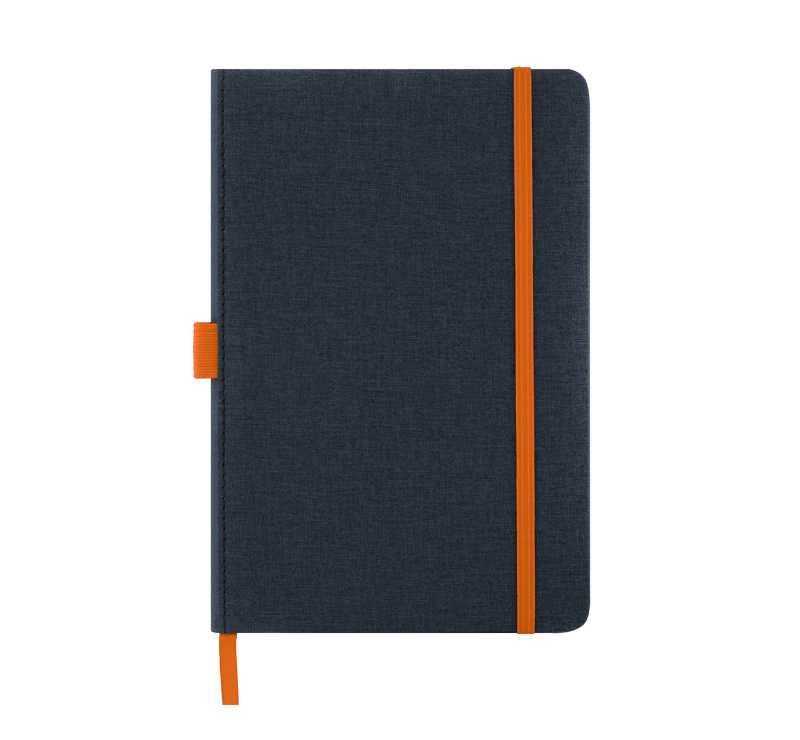 Тефтер A5 с ластик и разделител, 80 листа с редове, цвят на хартията слонова кост с цветен ръб, твърда корица.
