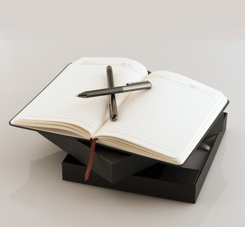 Комплект тефтер, химикалка и ролер в кутия.