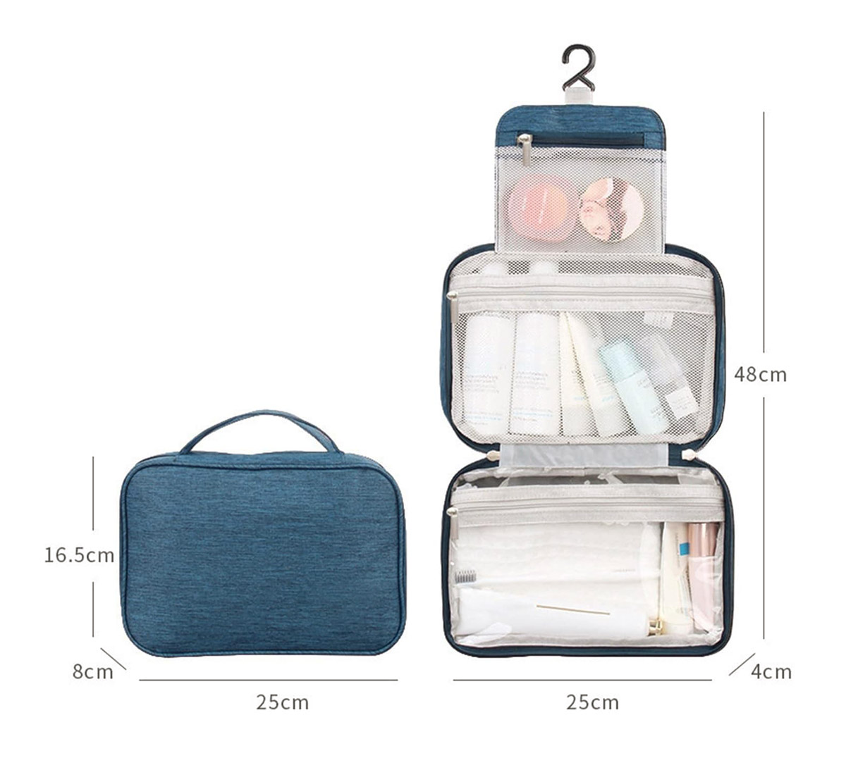 Козметична чанта за пътуване, разгъваема с три отделения и закачалка.