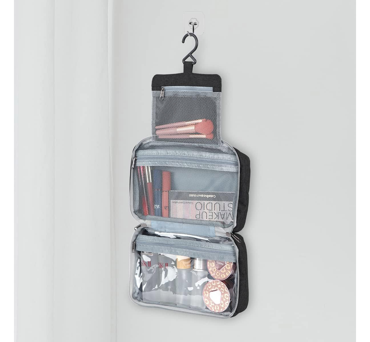 Козметична чанта за пътуване, разгъваема с три отделения и закачалка.