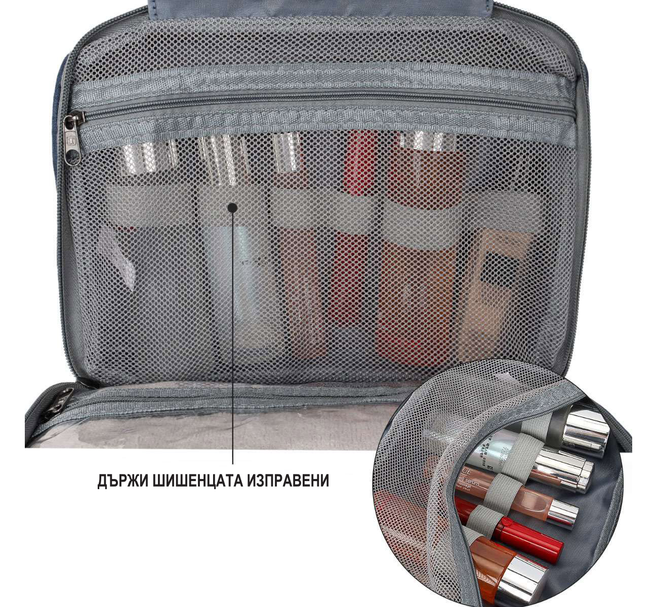 Козметична чанта за пътуване, разгъваема с четири отделения и закачалка.
