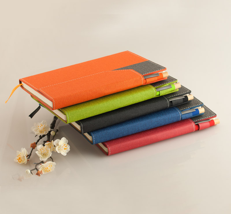 Тефтер A5 с химикалка, магнитно закопчаване и разделител, 96 листа с редове, цвят на хартията слонова кост, твърда корица.