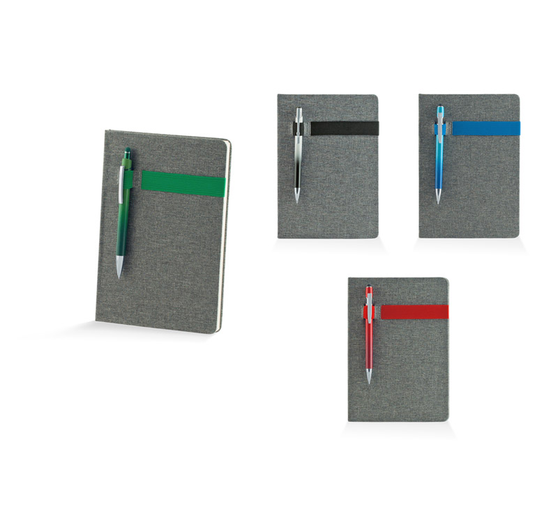Тефтер A5 с място за химикалка, 80 листа с редове, цвят на хартията слонова кост, твърда корица.