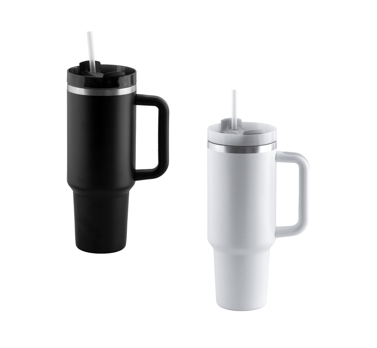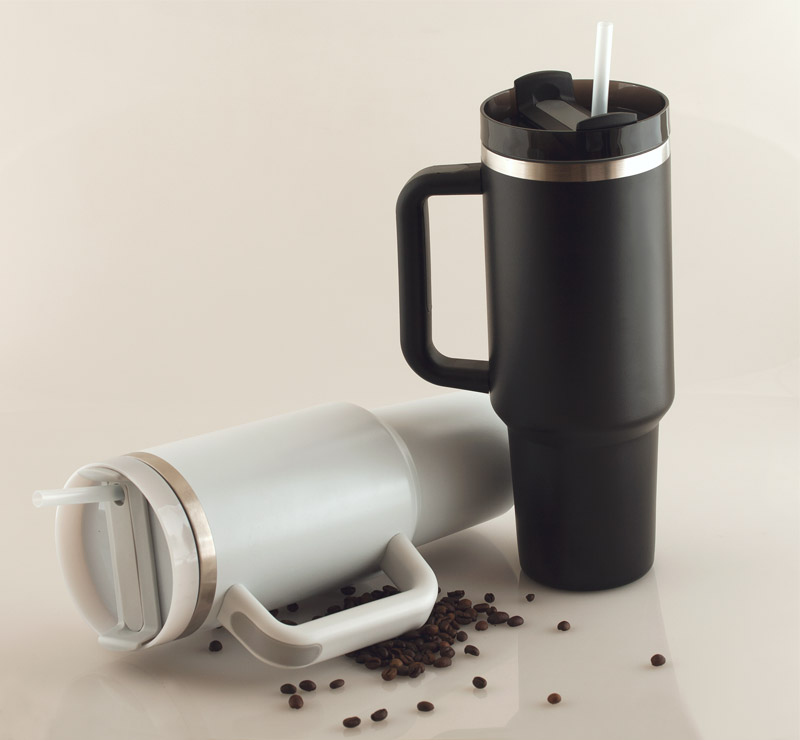 Термо чаша със сламка, двустенна, 1.100 ml.