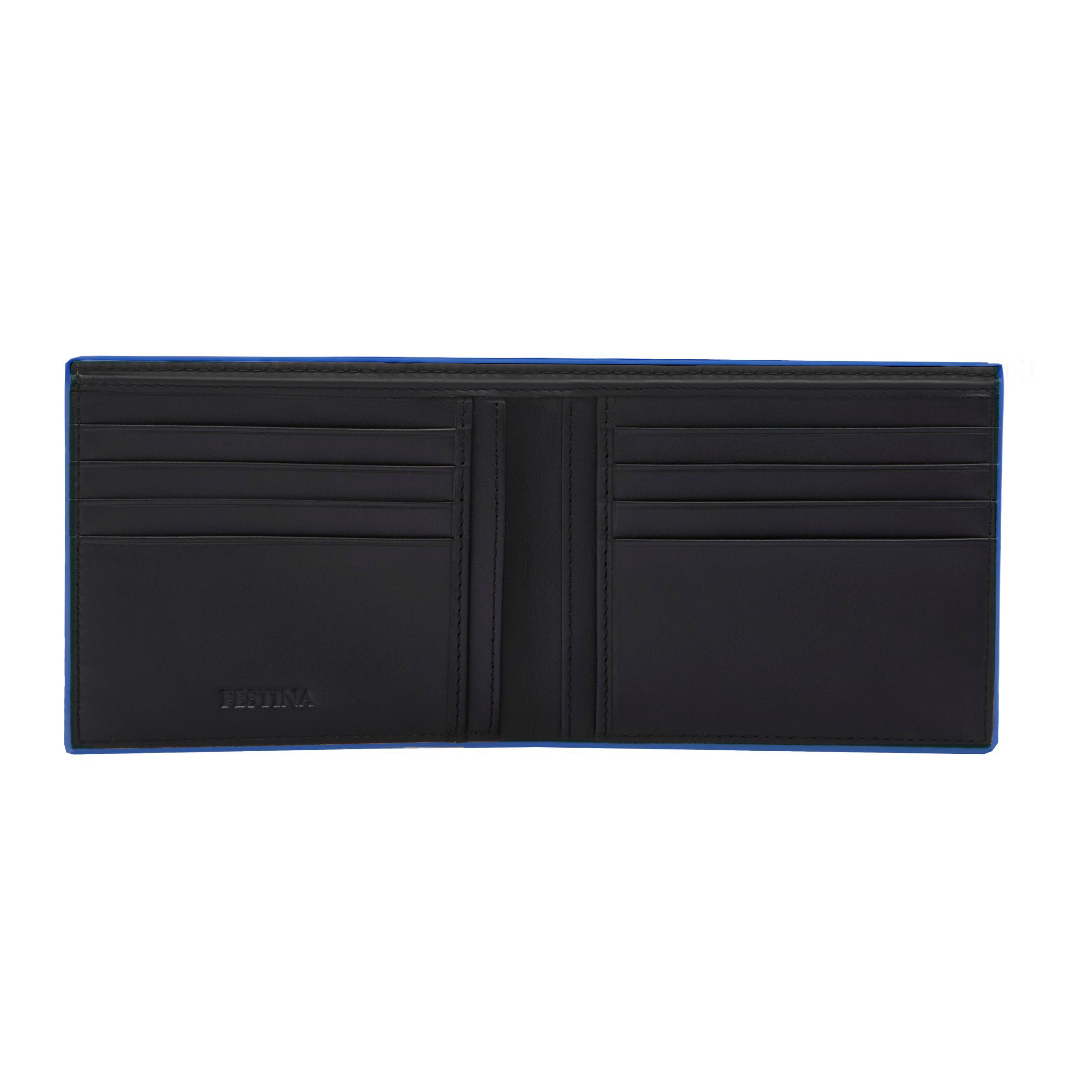 Контрастните кантове в наситено син цвят придават модерна визия и подчертават изчистената естетика. Портфейлът разполага с осем слота за карти, четири странични отделения и просторно отделение за банкноти, разделено на две части – за максимална практичност и отлична организация. Перфектен избор за корпоративен подарък, съчетаващ функционалност и престиж