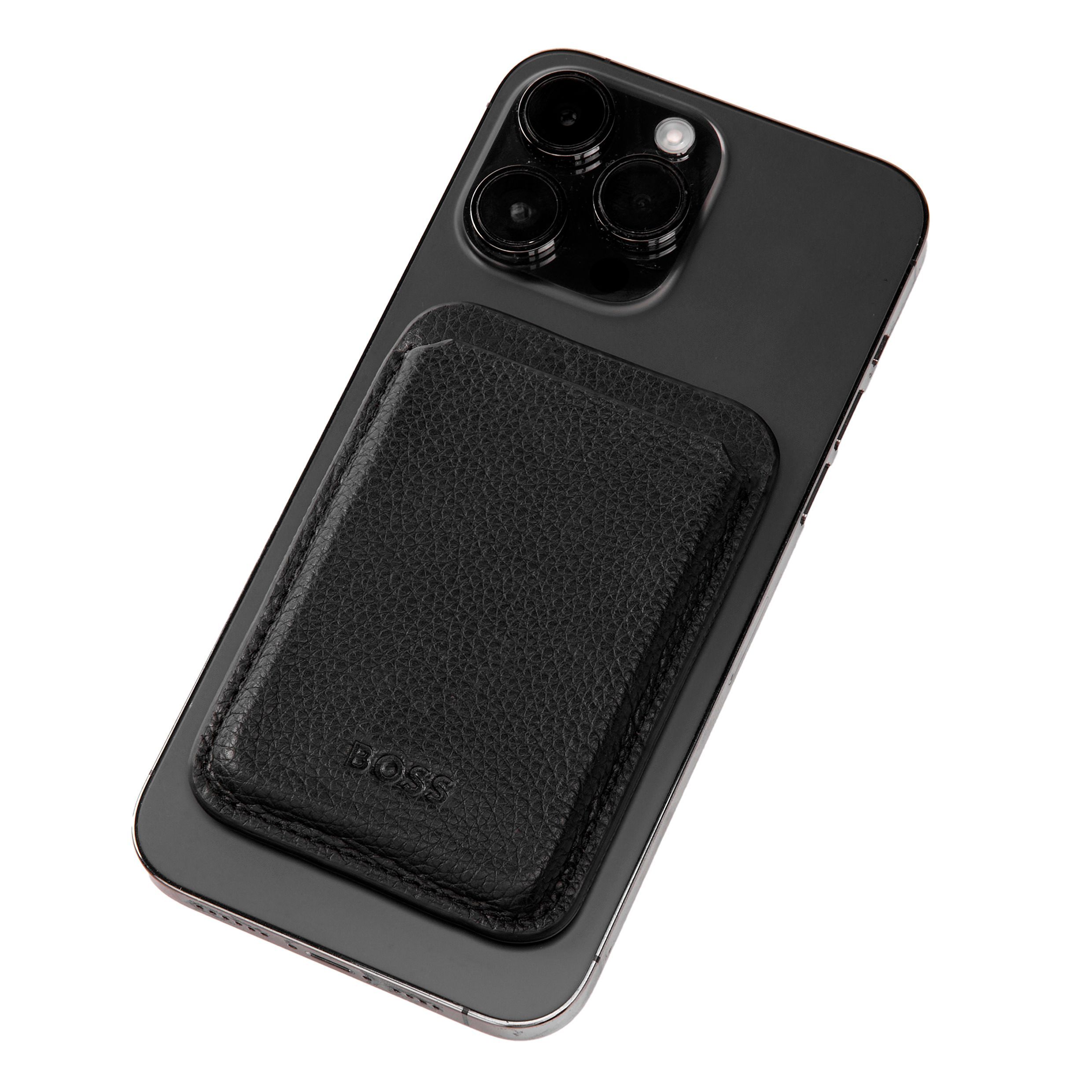 Магнитен калъф за карти BOSS е изработен от висококачествена естествена кожа с фина матова текстура и релефна повърхност. Съвместим с технологията MagSafe, той се прикрепя лесно към гърба на съвместими устройства, предлагайки удобство и стил в едно.