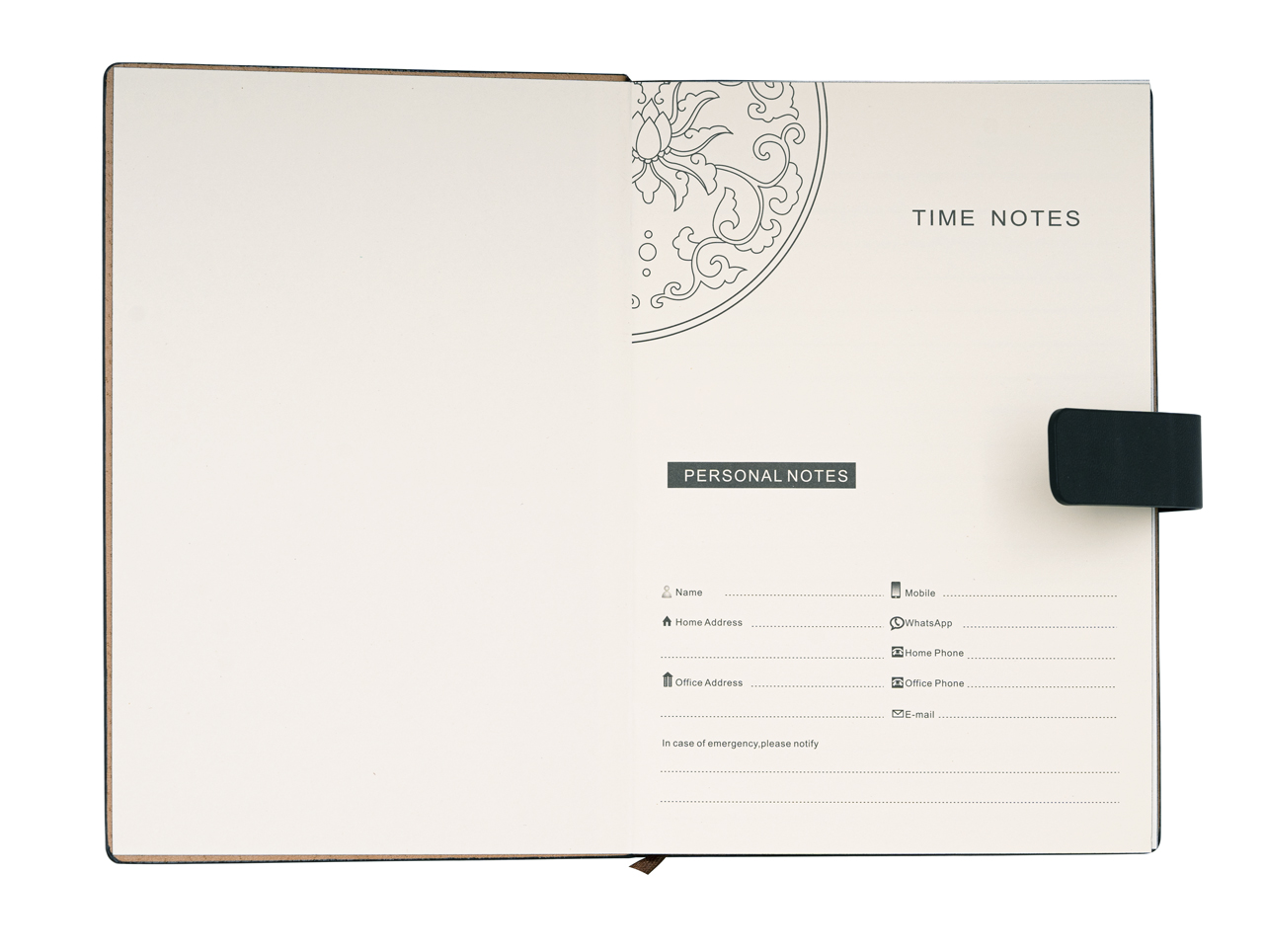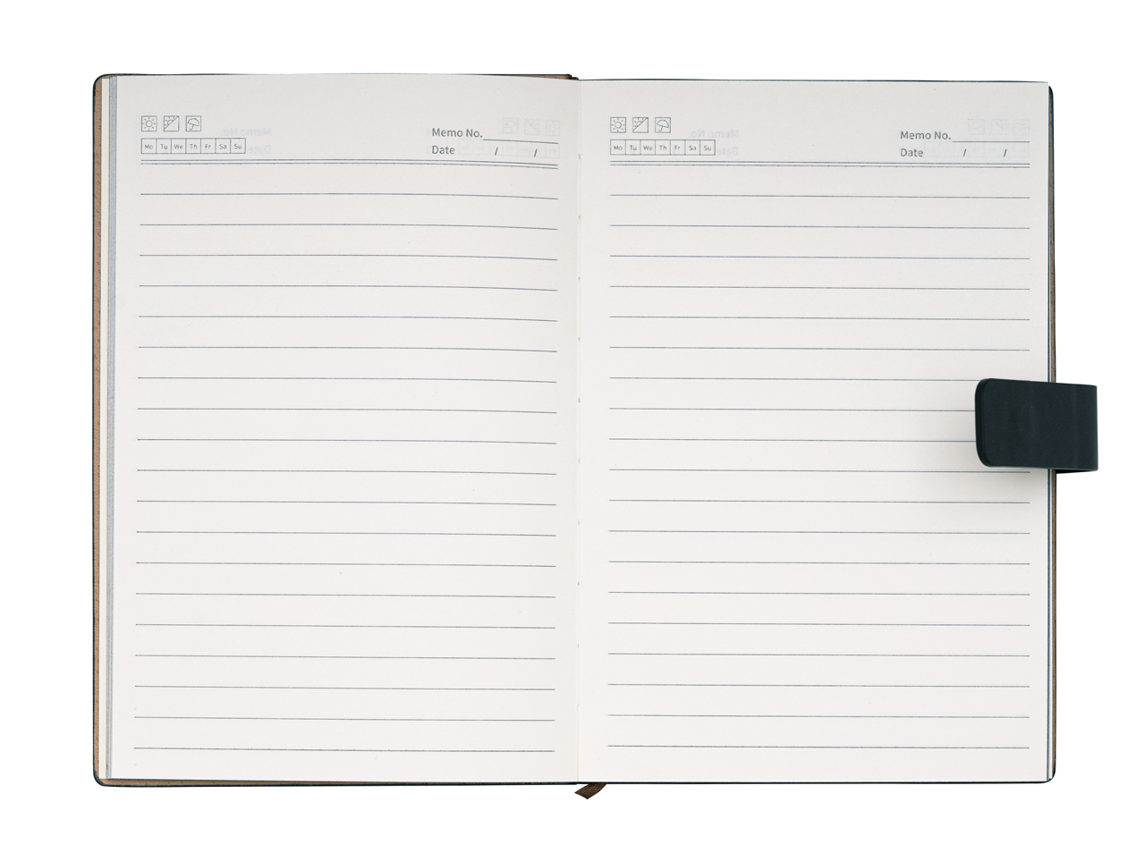 Стилен бележник във формат A5 с твърди корици, от термо еко кожа, с геометрични форми. Терминът "термо кожа" означава, че при брандиране чрез топъл печат логото се отличава много контрастно и красиво. Бележникът съдържа 192 броя тонирани страници с черен кант и широки редове.
