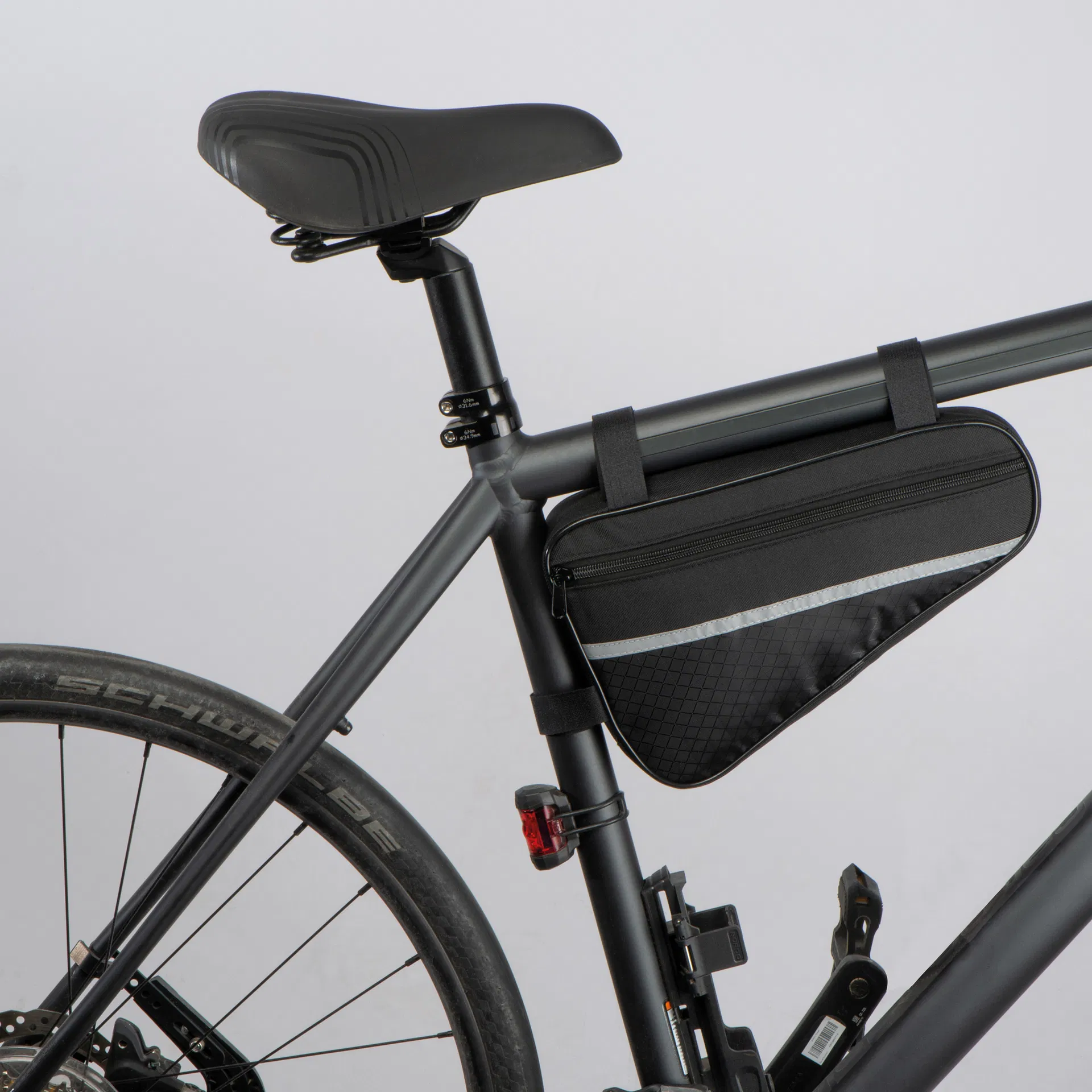 Чанта за велосипед, изработена от здрав полиестер с отразителни ленти за по-добра видимост. Лесно се прикрепя към средната рамка с помощта на скобите и предлага достатъчно пространство за всички важни вещи.