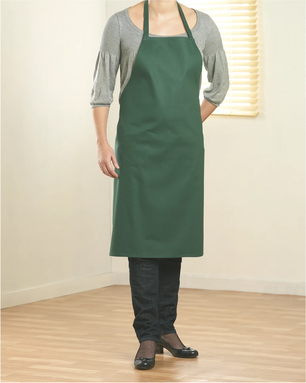 Класическа готварска престилка от 100% памук (180 гр/м²). Удобна за ежедневна употреба в кухнята.