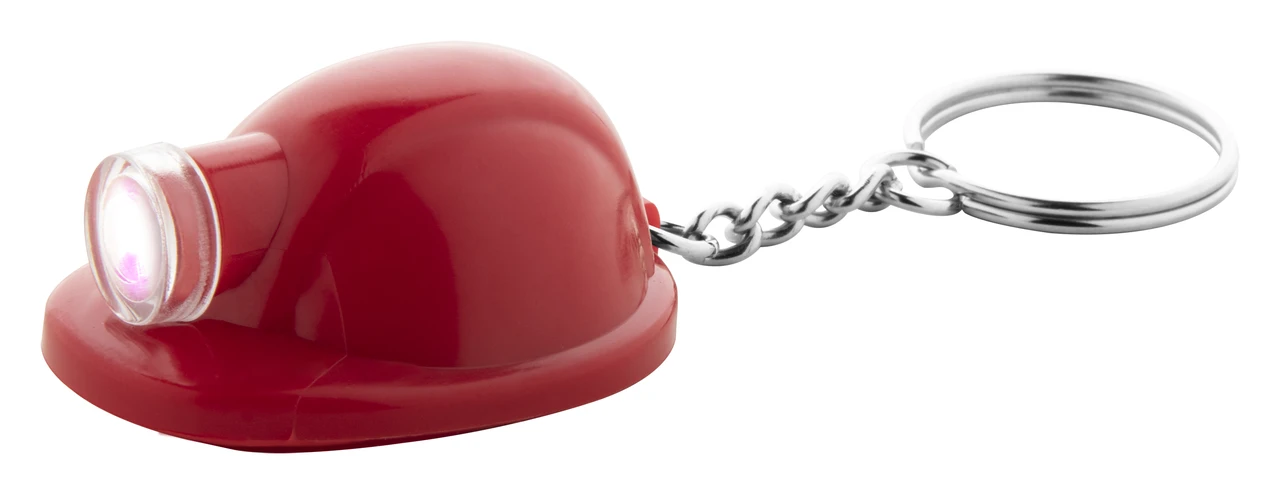 Ключодържател във формата на предпазна каска с вградено LED фенерче. Включена е батерия.