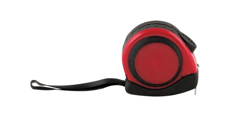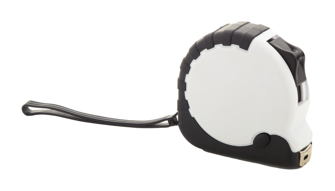 Ролетка от рециклирана ABS пластмаса с функция за застопоряване, метален клипс и каишка. Дължина: 3m.