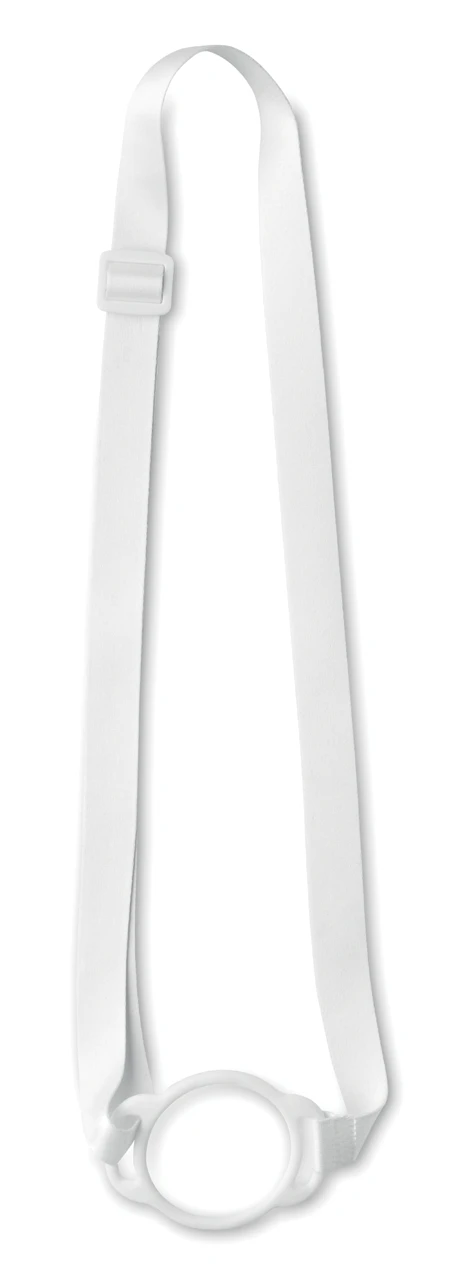 Практична лента за врат с държач за бутилка от силикон (диаметър 6 см). Ширина на лентата: 20 мм. Регулируема дължина на лентата. Идеална за спорт, събития и туризъм