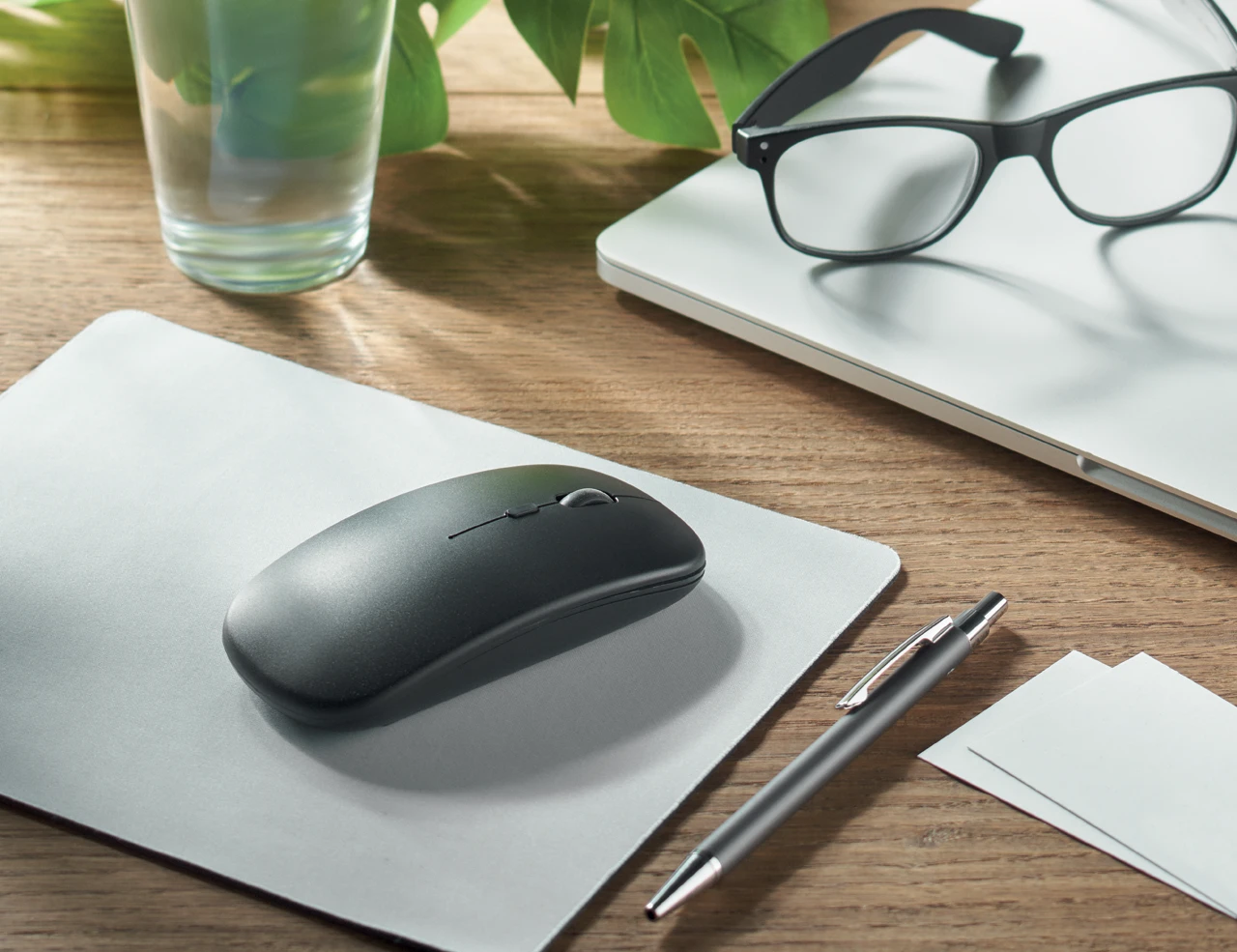 Безжична оптична мишка, изработена от рециклирана ABS пластмаса. Вградена батерия 500 mAh и включен USB Type-C кабел за зареждане. Три опции за DPI – 800, 1200 и 1600.