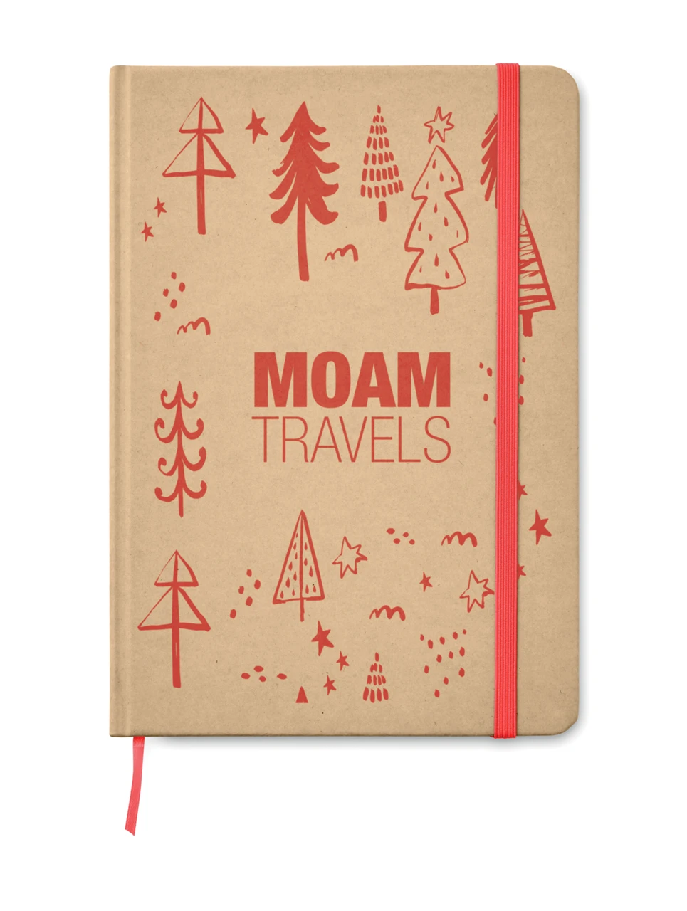 Екологичен бележник A5 с твърда корица от рециклиран картон. Съдържа 160 страници (80 листа) с редове, изработени от рециклирана хартия. Включва еластична лента за затваряне и маркираща лента. Перфектен за ежедневни бележки, идеи и записки.