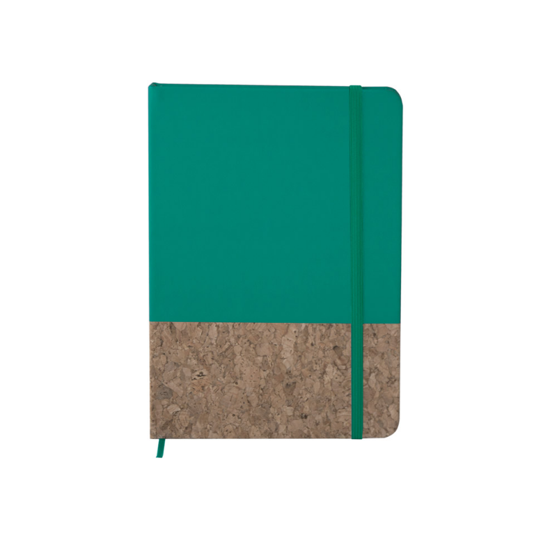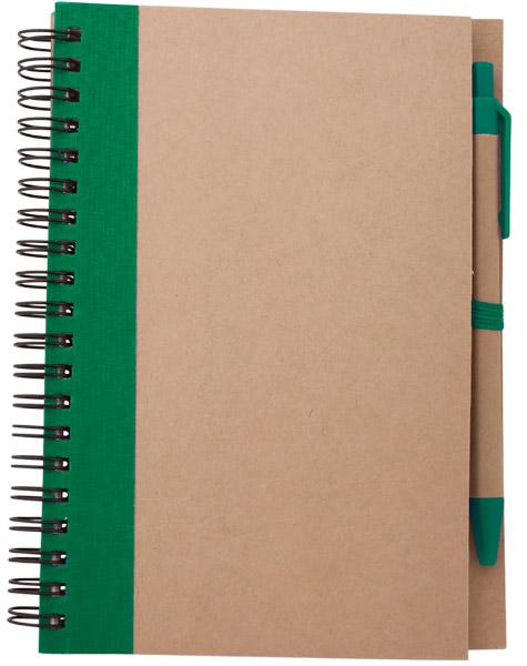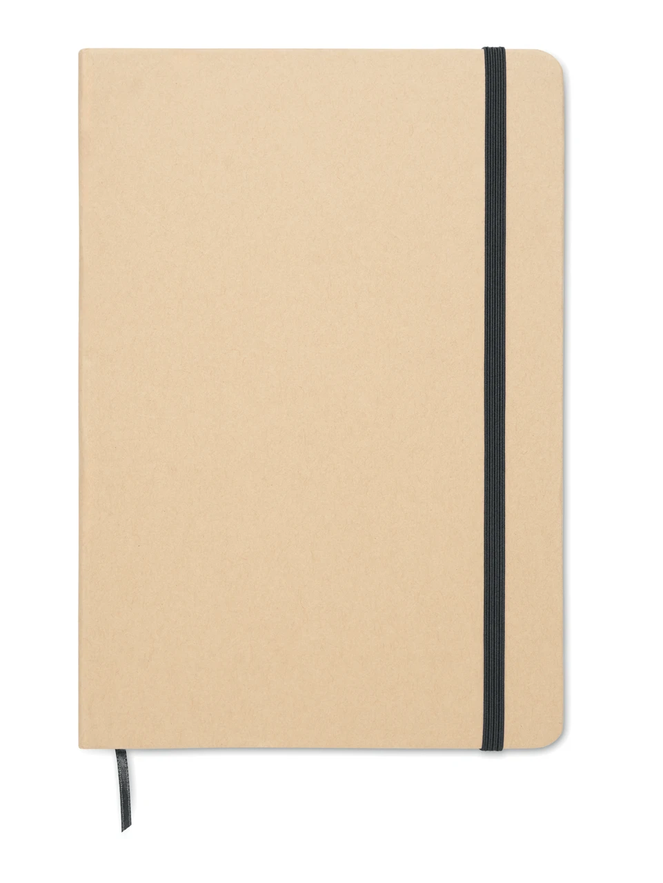 Екологичен бележник A5 с твърда корица от рециклиран картон (бежов цвят). Съдържа 160 страници (80 листа) с редове, изработени от рециклирана хартия. Разкрива цвета си при лазерно гравиране. Включва еластична лента за затваряне и маркираща лента в съответстващия цвят.