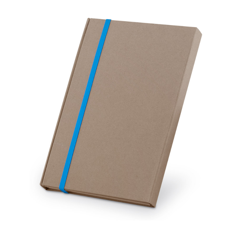 Екологичен бележник A5 с твърда корица от рециклиран картон (бежов цвят). Съдържа 160 страници (80 листа) с редове, изработени от рециклирана хартия. Разкрива цвета си при лазерно гравиране. Включва еластична лента за затваряне и маркираща лента в съответстващия цвят.